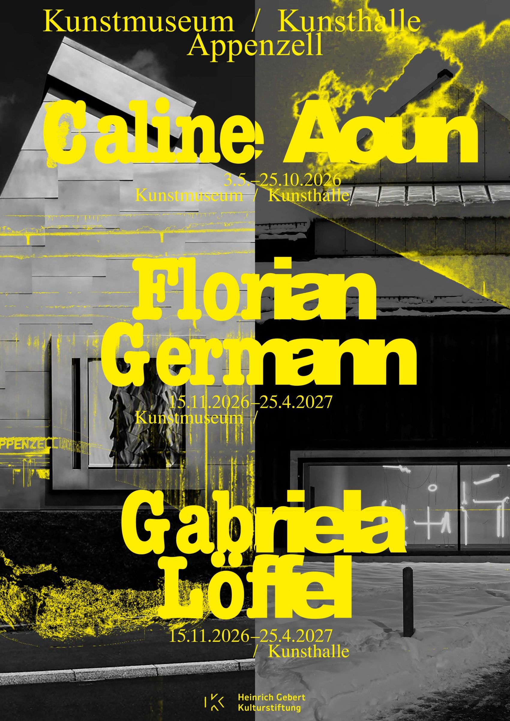 Die Einzelausstellung von Caline Aoun (*1983, Beirut, LBN; lebt und arbeitet in Beirut) erstreckt sich über das Kunstmuseum und die Kunsthalle und präsentiert Arbeitsweisen, in denen digitale und physische Prozesse ineinandergreifen. Aoun arbeitet installativ und häufig raumbezogen mit Medien wie Skulptur, Druckgrafik, Arbeiten auf Papier und Video. Dabei nutzt sie technische Geräte und alltägliche Materialien – etwa Drucksysteme, Wasserkreisläufe oder natürliche Stoffe –, um Informationen wie Licht, Wärme, Feuchtigkeit oder Daten in ästhetische und körperliche Erfahrungen zu übersetzen. Wiederholung, Sättigung und Verzögerung dienen ihr als Methoden, um das Verhältnis von Bild, Oberfläche und Raum zu untersuchen. Die Ausstellung reagiert präzise auf die architektonischen und atmosphärischen Bedingungen der jeweiligen Orte und stellt dabei die Frage, wie die Konstellationen von Apparaturen und Formen die Wahrnehmung strukturieren, Zustände beeinflussen und Realität bilden.